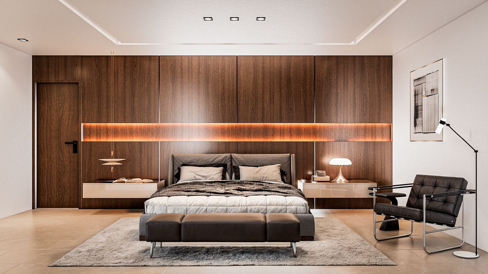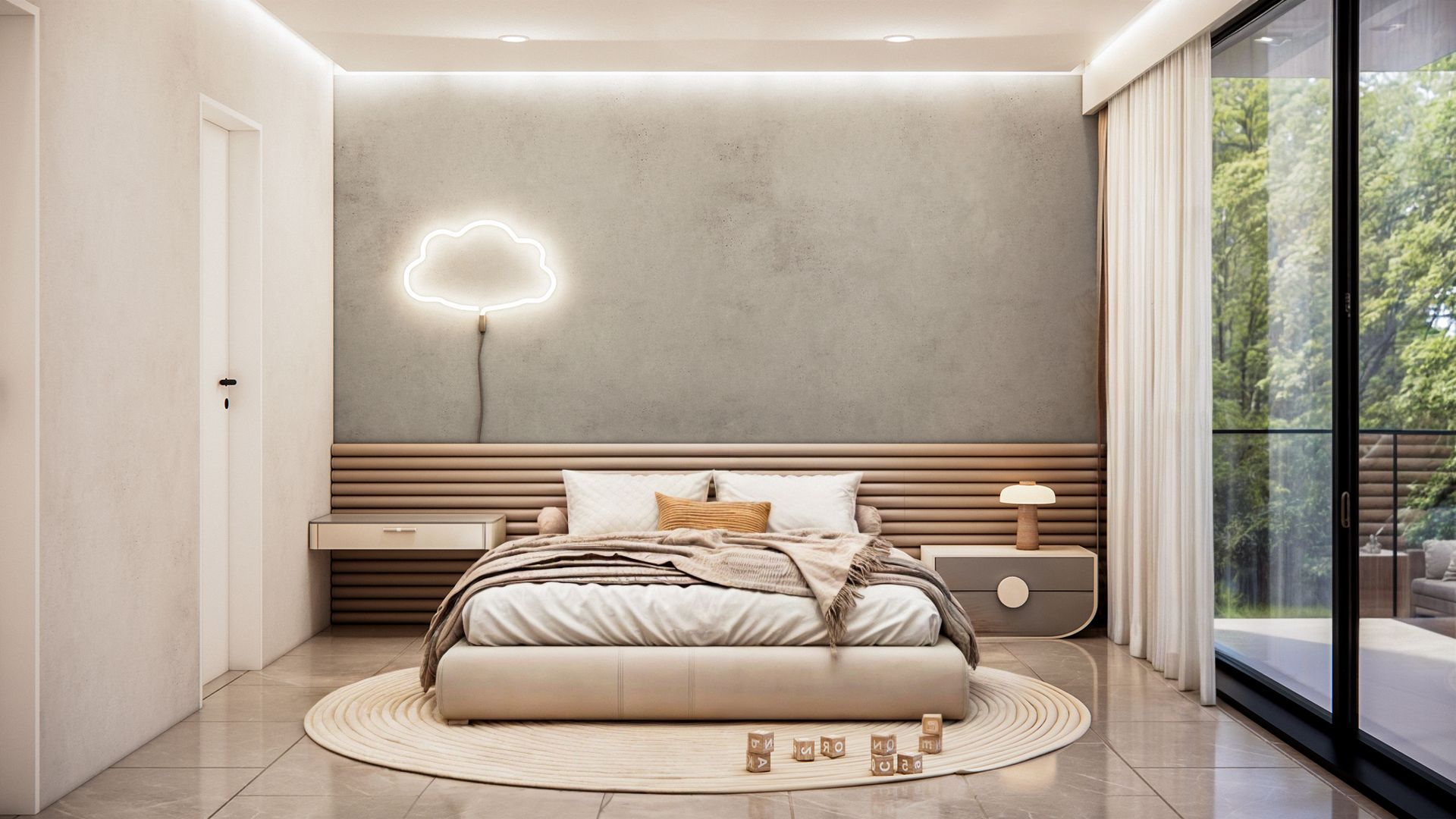 Las áreas privadas han sido diseñadas con un estilo moderno y coherente, donde la iluminación LED y los spots juegan un papel esencial para crear ambientes luminosos, funcionales y acogedores. Las dos recámaras mantienen una estética contemporánea, pero con diferenciación en sus paletas de colores para ofrecer carácter y personalidad a cada espacio.